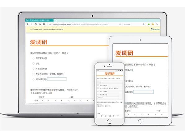 同一份问卷自动适配电脑、平板、手机的答题样式